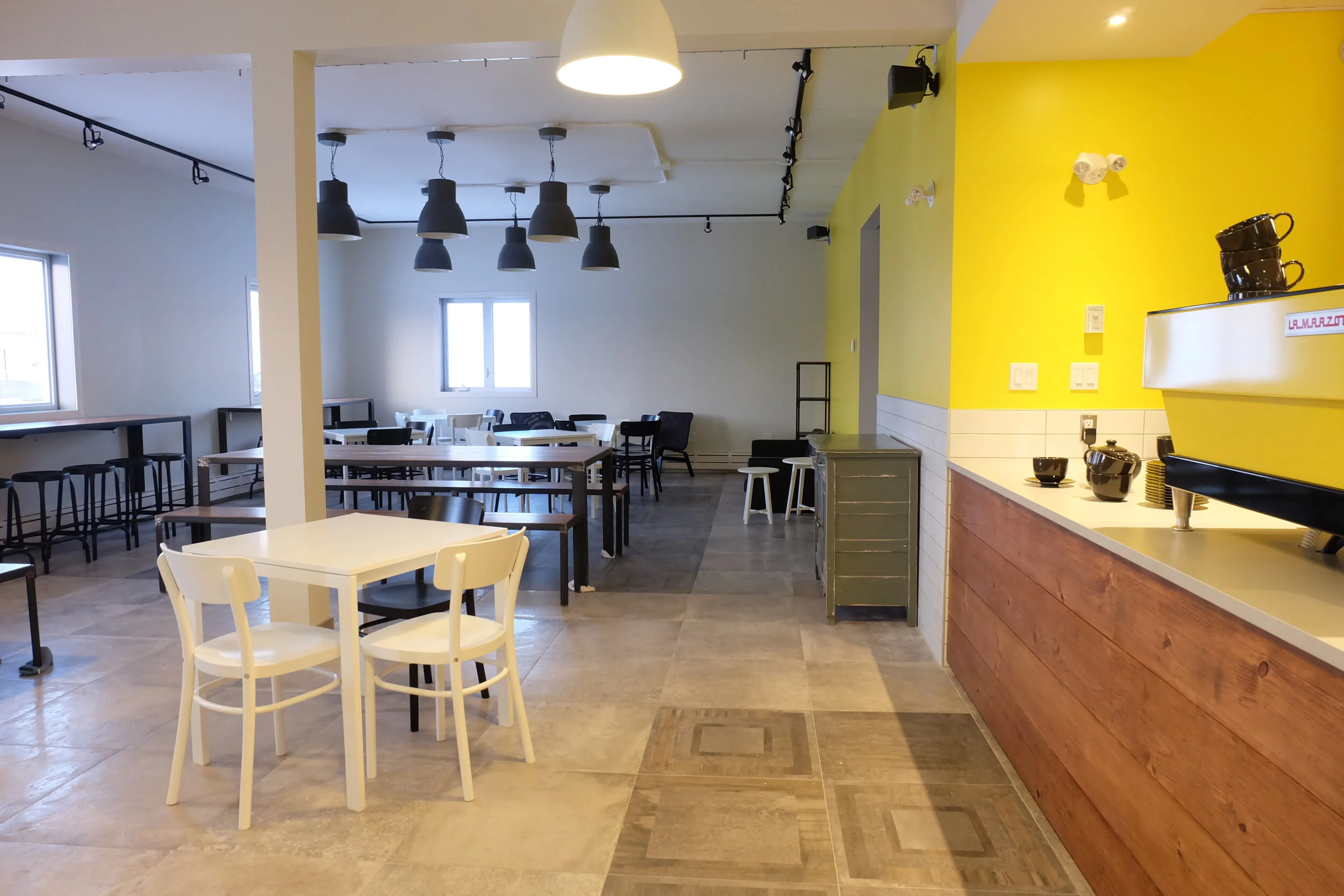 The northern community of Iqaluit, Nunavut was in need of a casual coffee house with a relaxed atmosphere and delicious menu. This Tenant Improvement project included creative concept development, branding, visual identity, and space planning. Through a carefully selected material palette, the outcome is a sunny and inviting coffee shop that is multi-use and can be used as an event space for private parties & community events.