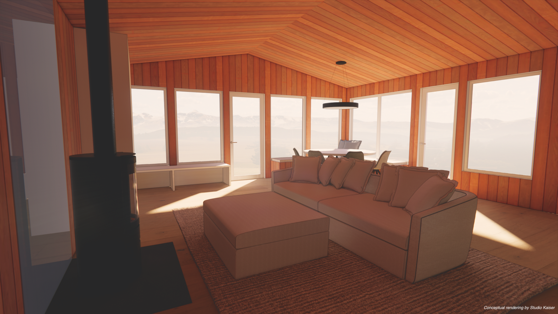 The essence of these conceptual renders are nostalgic interior that pay homage to the retro cabins that are still standing around Skaha Lake in the south Okanagan.